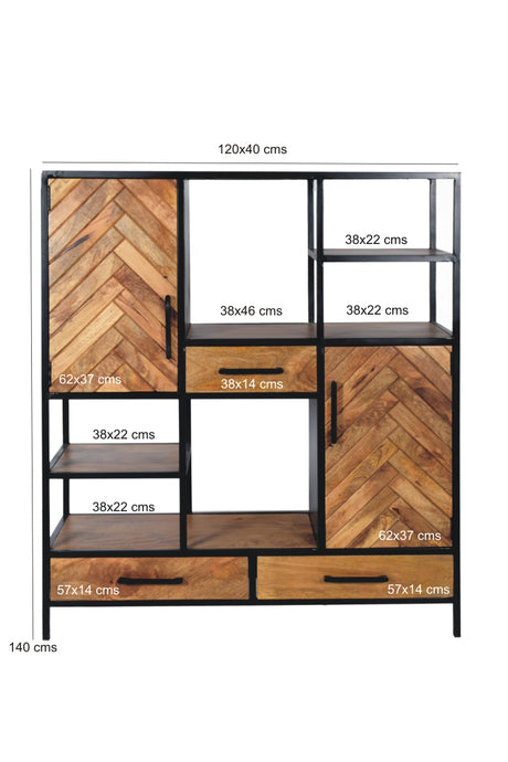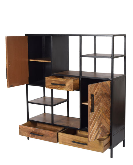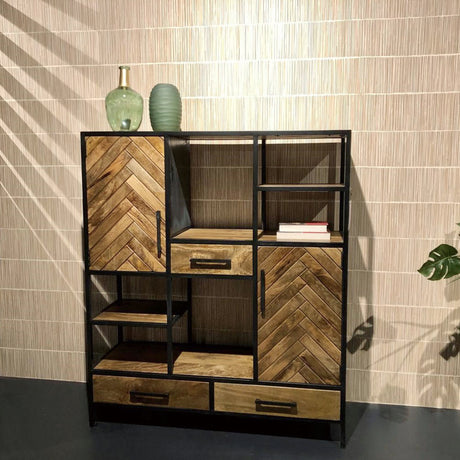 Highboard Industriedesign, Bücherregal Metall-Holz, Schrank Industrie, Breite 120 cm