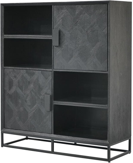 Highboard schwarz, Schrank schwarz mit zwei Türen, Wohnzimmerschrank schwarz Holz, Breite 120 cm