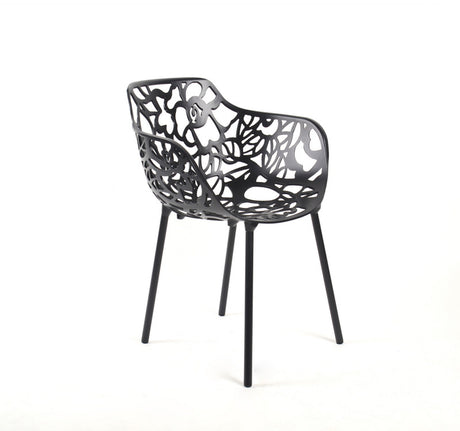 4er Set, Gartenstuhl schwarz, Designstuhl aus Aluminium, Outdoor-Stuhl schwarz