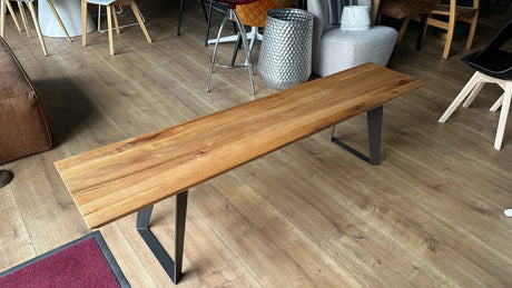 Holzbank mit Metallfüßen aus Massivholz Eiche