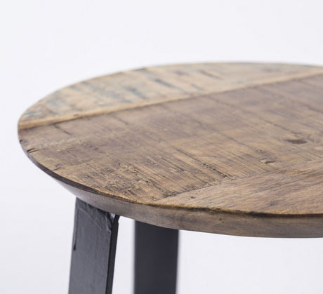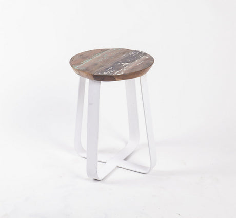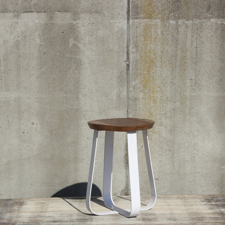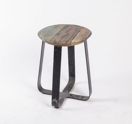 Hocker aus Metall und Massivholz im Industriedesign, Höhe 45 cm