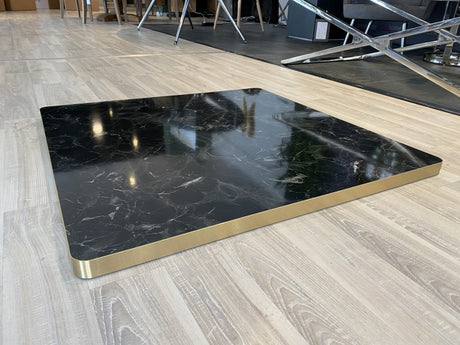 Tischplatte schwarz-Gold Marmoroptik, Gastro-Tischplatte Marmoroptik schwarz, Maße 80x80 cm