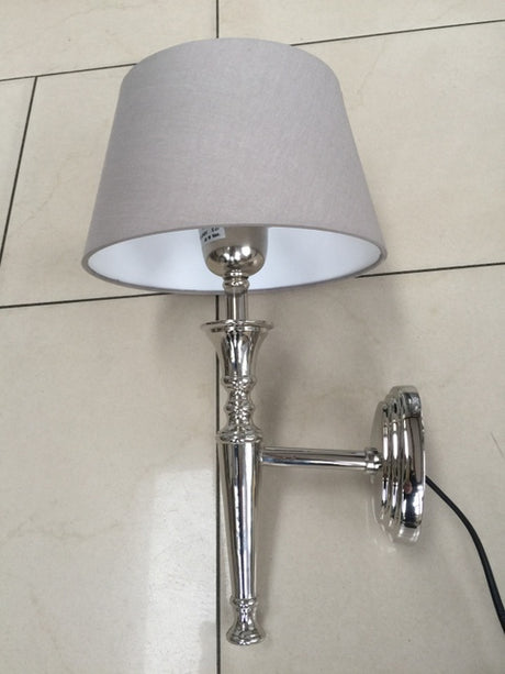 Wandleuchte verchromt, Farbe silber, Wandlampe mit Lampenschirm grau