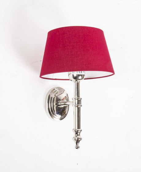 Wandleuchte verchromt, Farbe silber, Wandlampe mit Lampenschirm rot