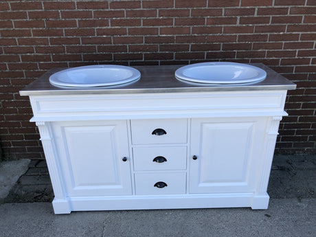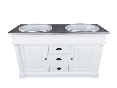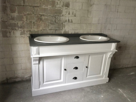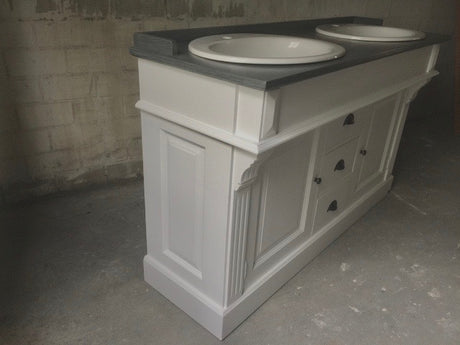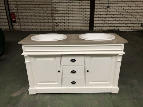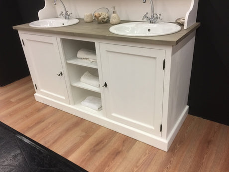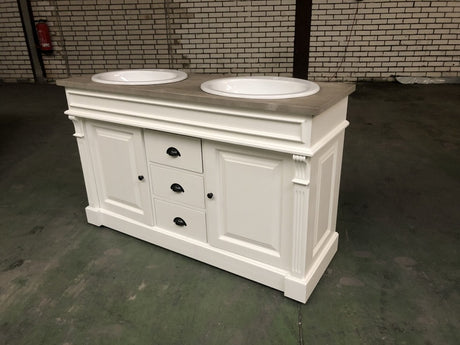 Waschtisch weiß-grau Landhaus, Waschtisch Massivholz, Doppelwaschtisch im Landhausstil