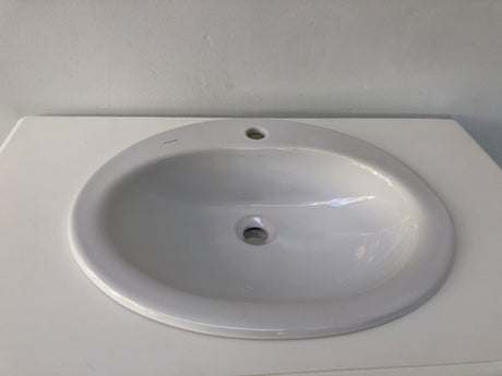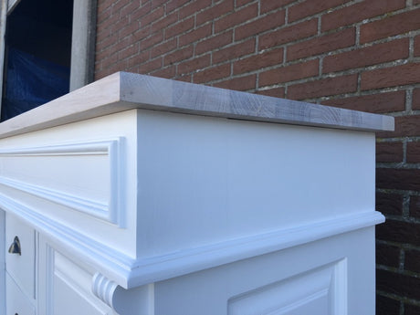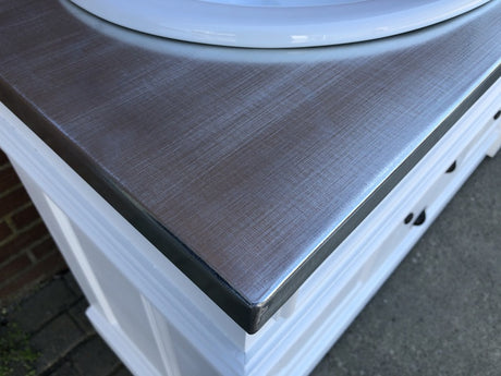 Waschtisch weiß-braun Massivholz, Waschtisch Eiche Tischplatte Landhausstil, Breite 103 cm