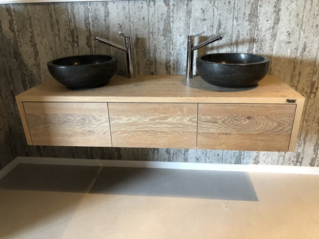 Waschtisch Eiche massiv, Doppelwaschtisch im Landhausstil, Breite 163 cm